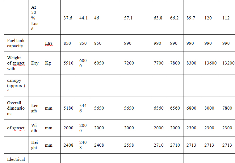 Genset ratings are selected based on the present load and future expansion. Fuel efficiency of most Gensets is optimized at the full rating of the Genset.